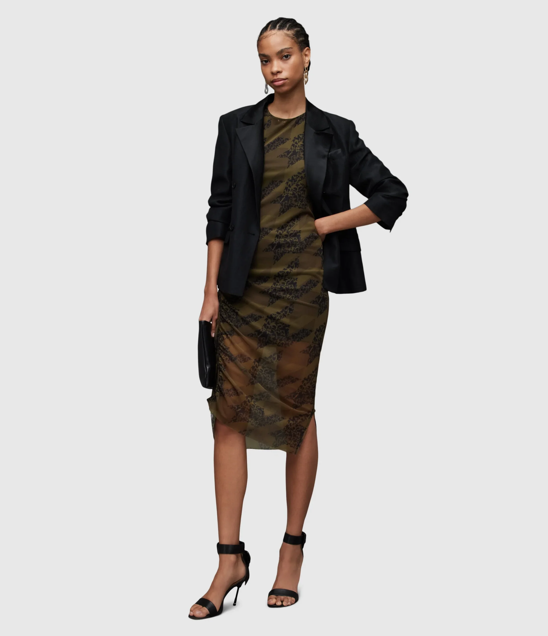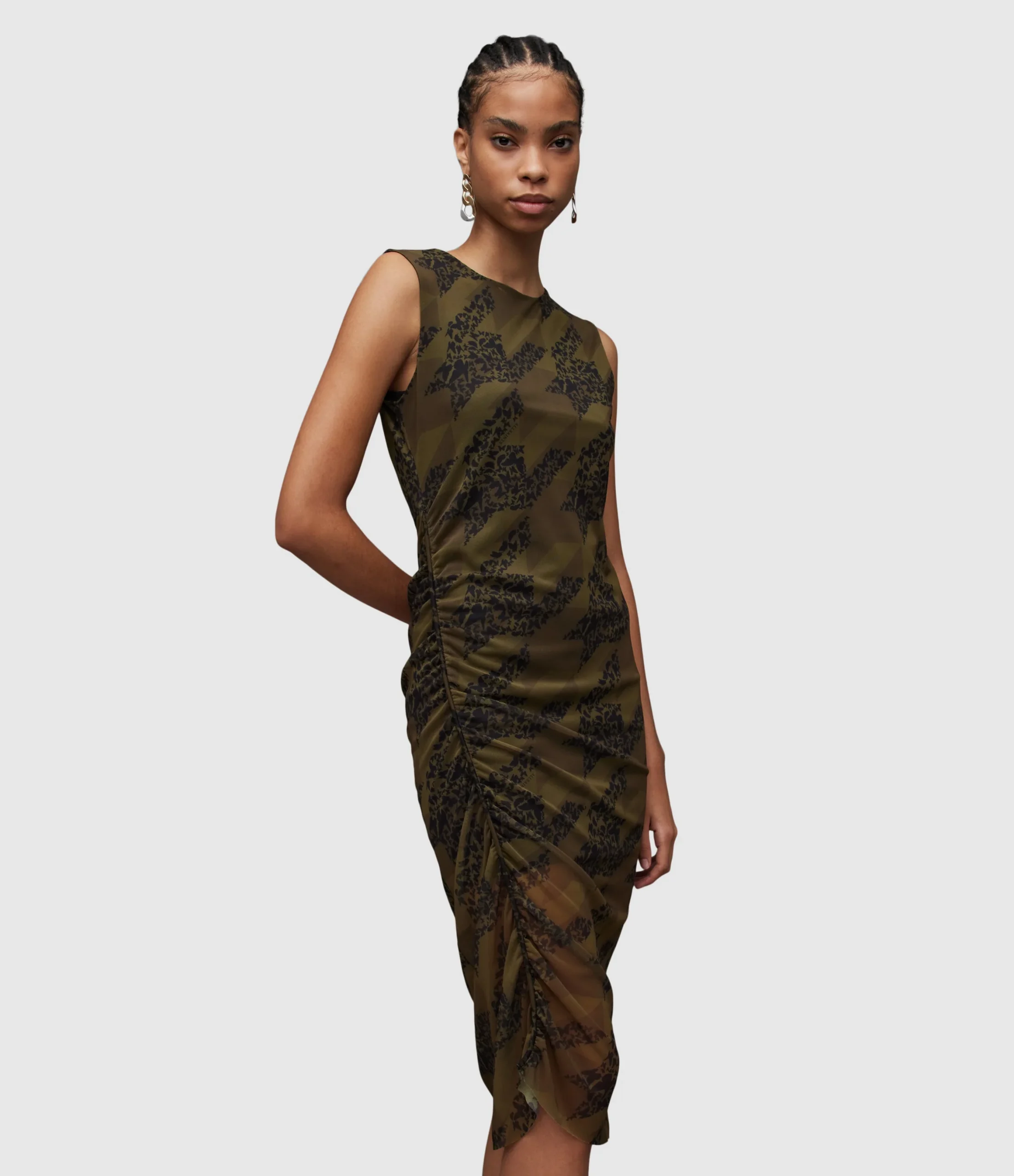 Vestido Nora Toni color Verde Khaki para mujer, marca AllSaints.