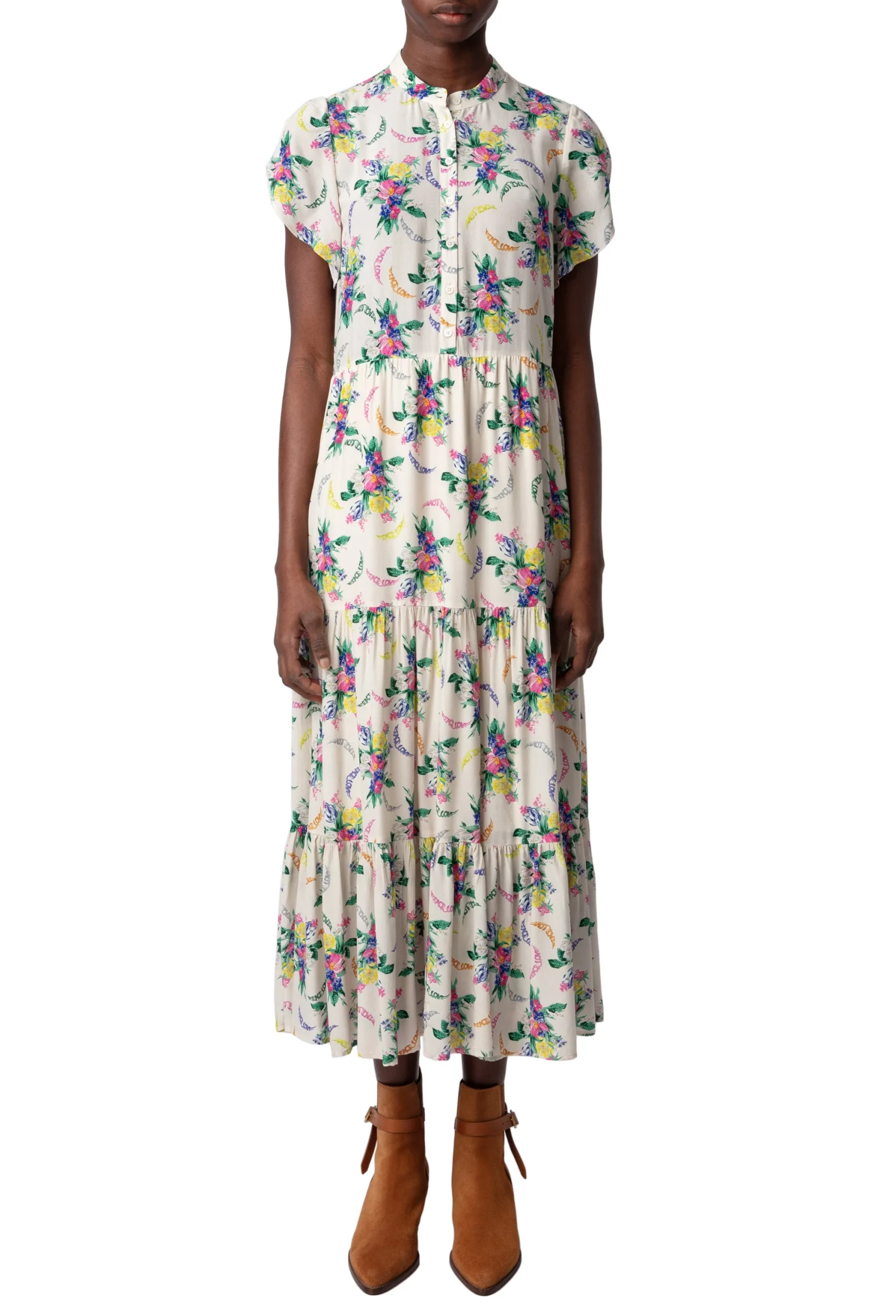 Vestido Razy Soft Bouquet Masilla marca Zadig & Voltaire. COMPOSICIÓN. Material principal: Viscosa. Consultar instrucciones de lavado en etiqueta interna.