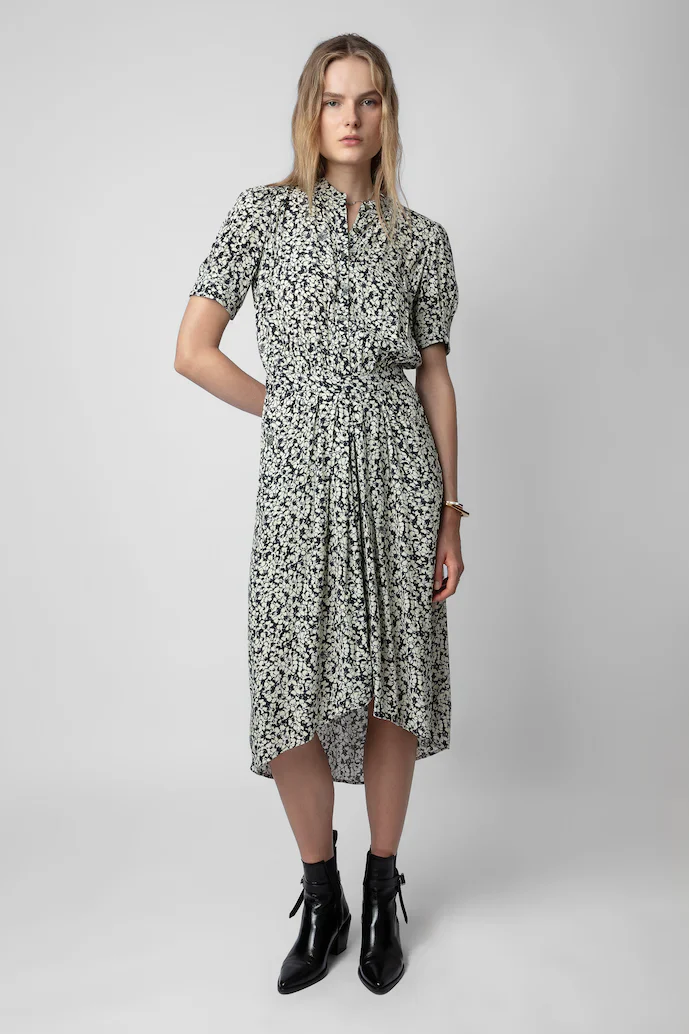 Vestido Rima Crepe Flowers Vainilla, marca Zadig & Voltaire. COMPOSICIÓN Y CUIDADOS: Consultar etiqueta interna.