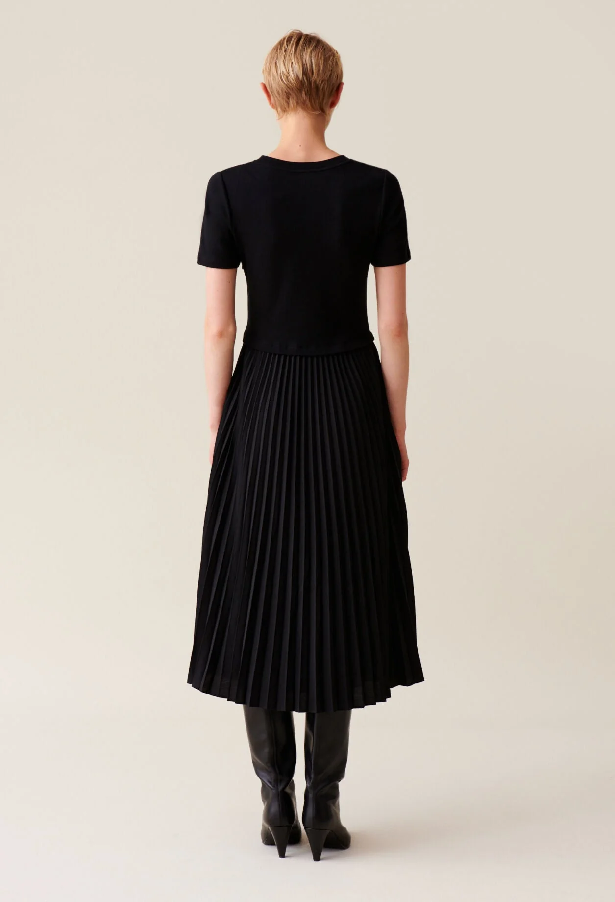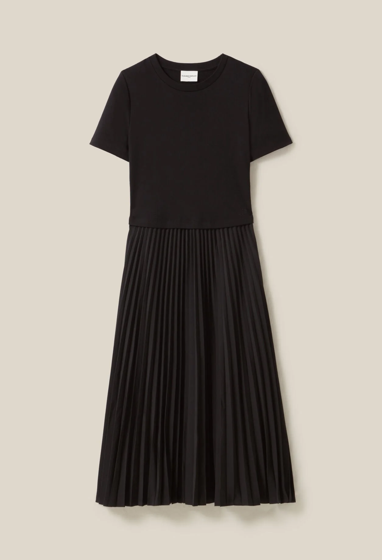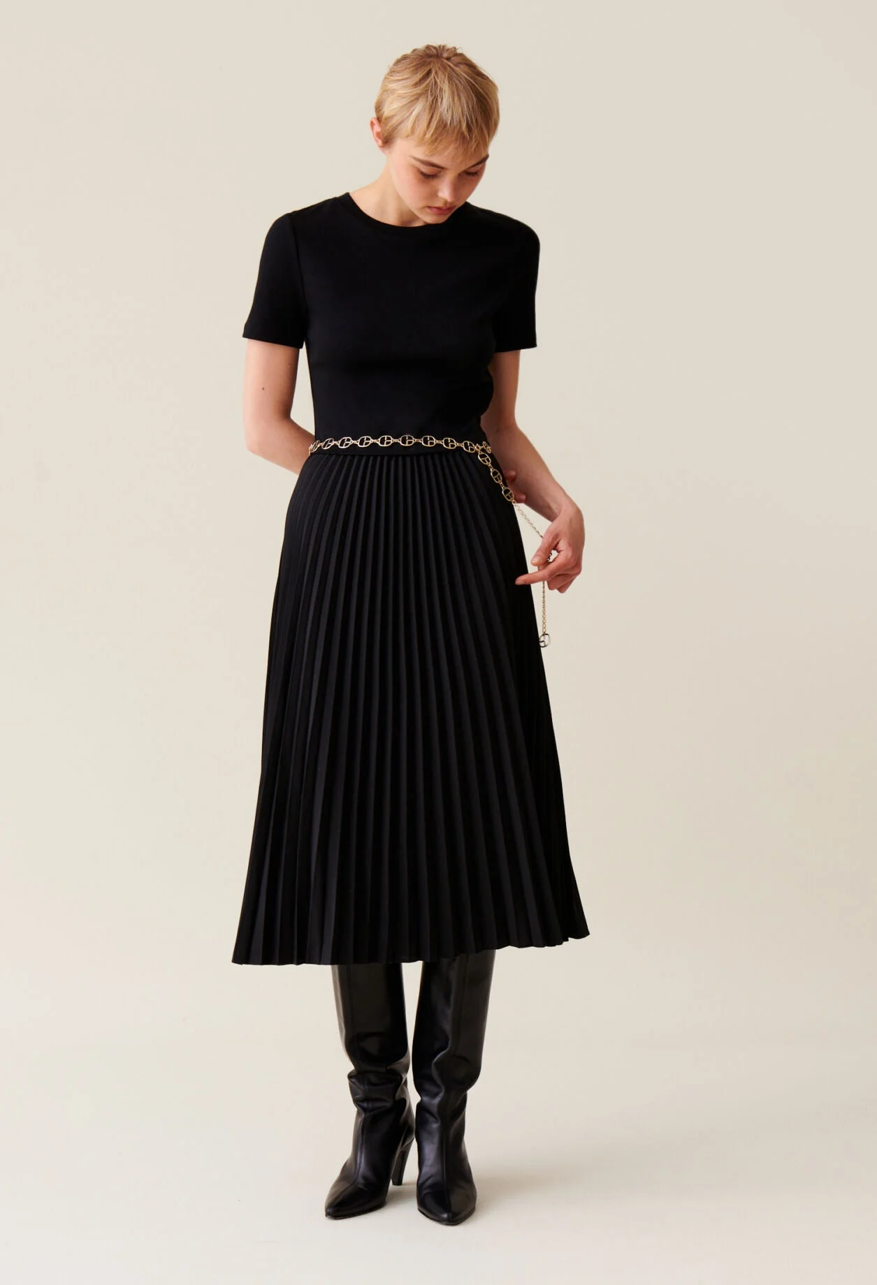 Vístete con un look de dos tejidos y un top tipo camiseta