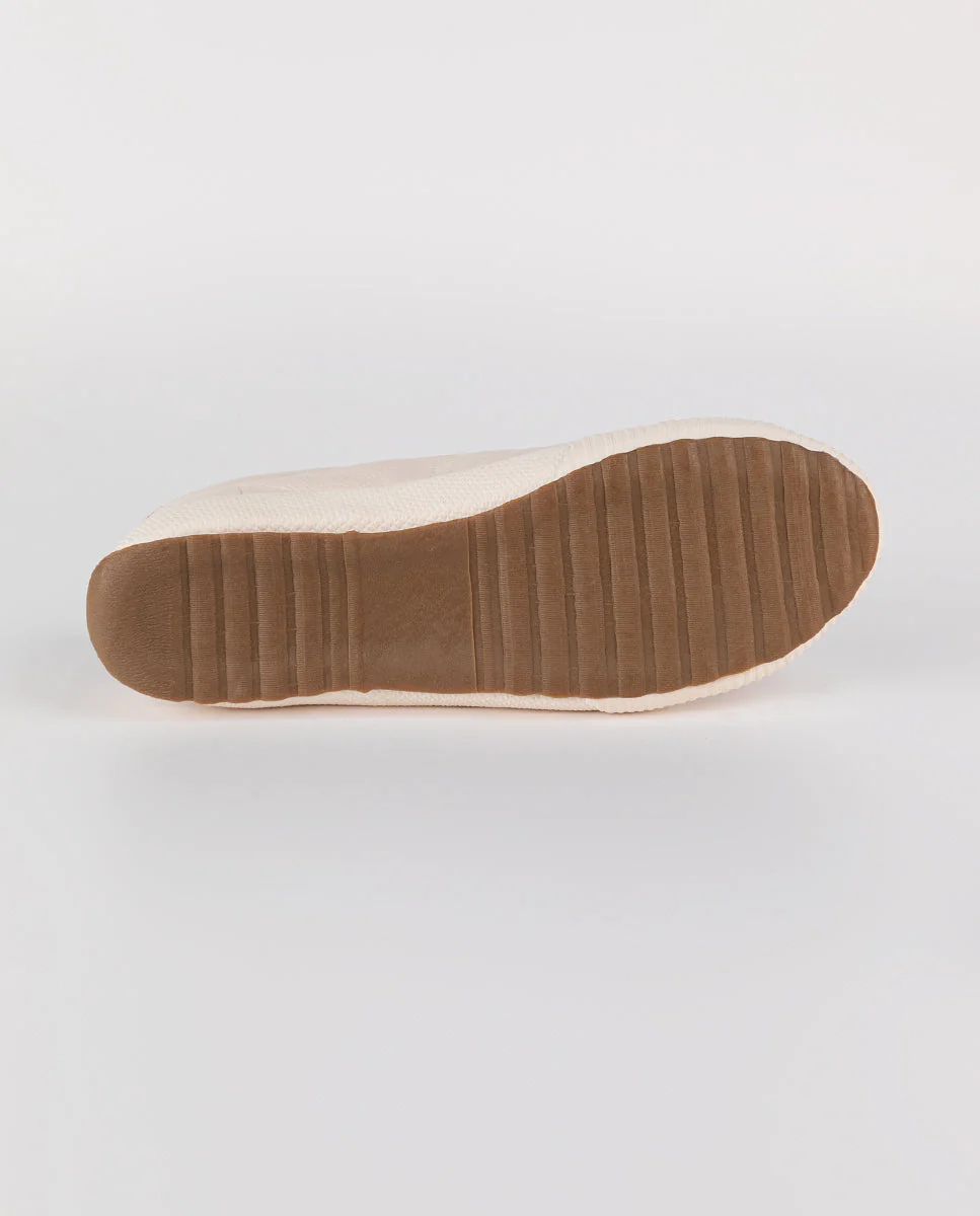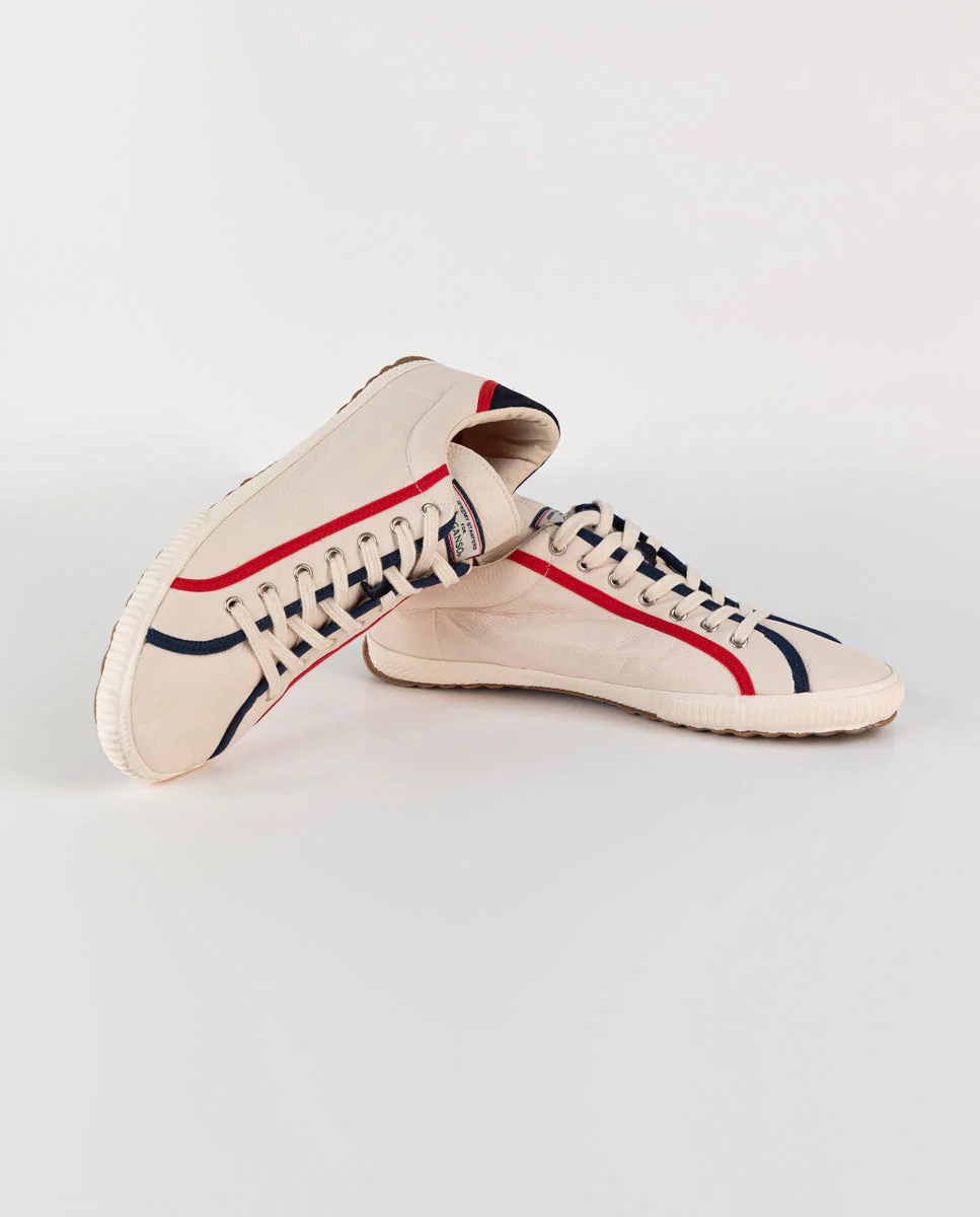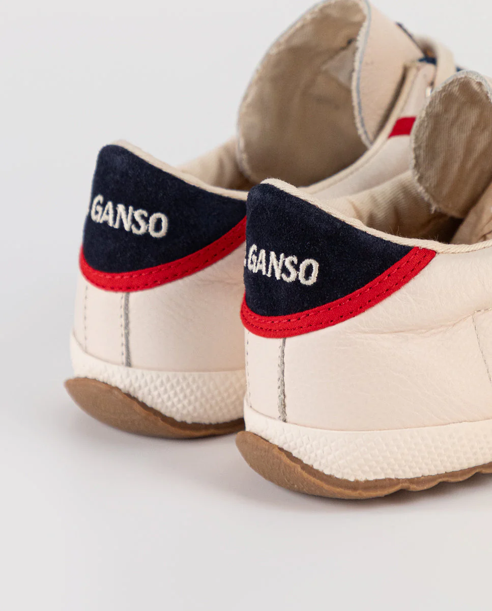 Zapatilla Unisex College en piel. Zapatilla lisa en color crudo detalle cinta a contraste en cordonera. Logotipo bordado en talonera a contraste. Cordones de color blanco.