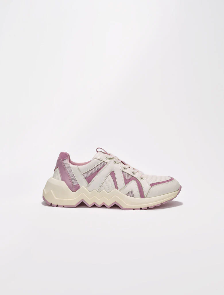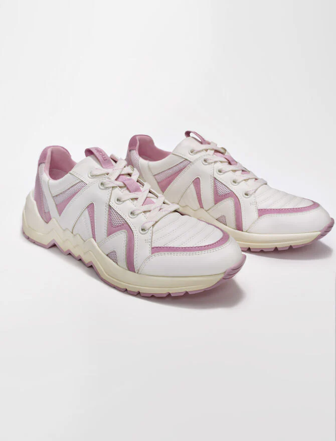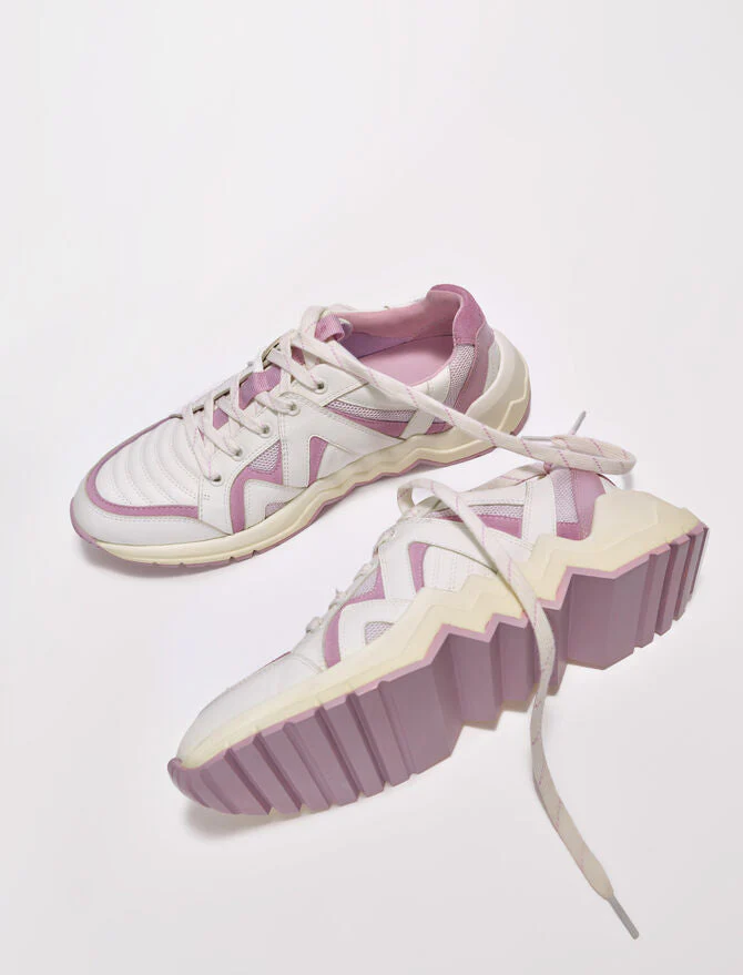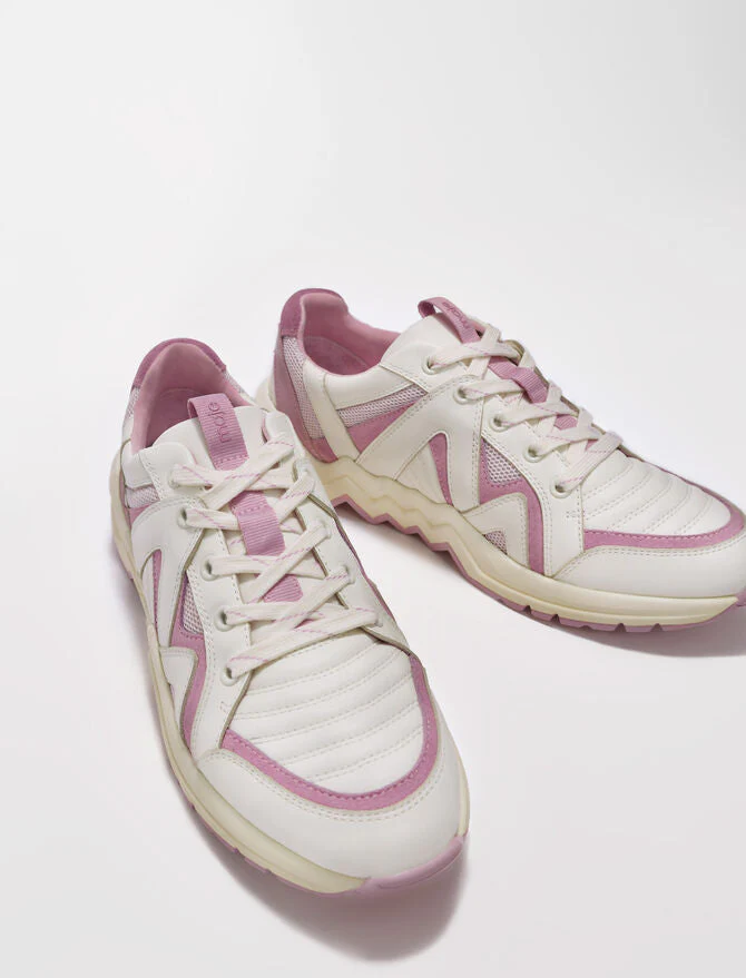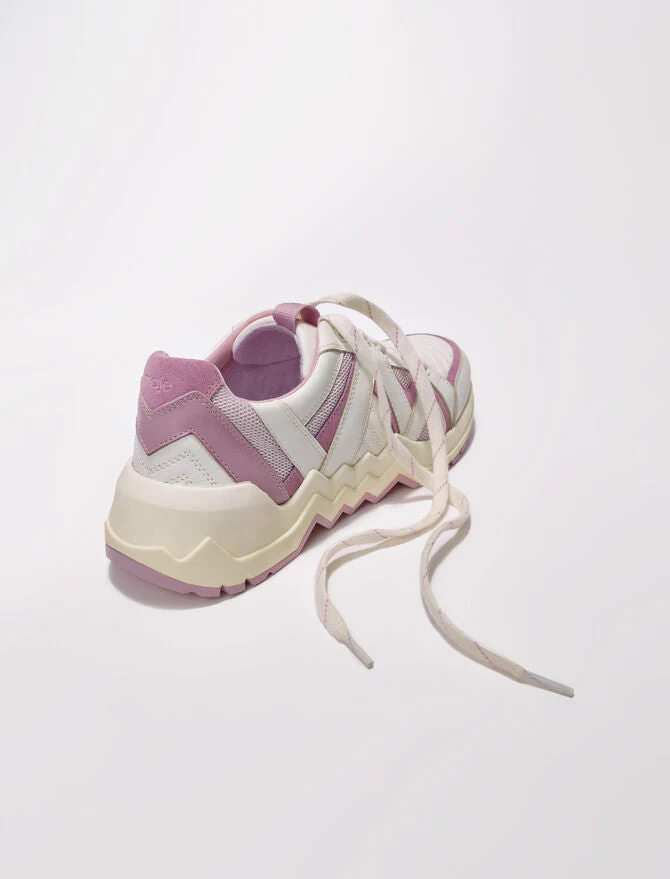 Zapatillas de piel con cordones y apliques de ante de colores y malla. Pespuntes en la parte superior y los laterales. Suela de goma gruesa y dentada. Logotipo de Maje en relieve en la parte trasera.