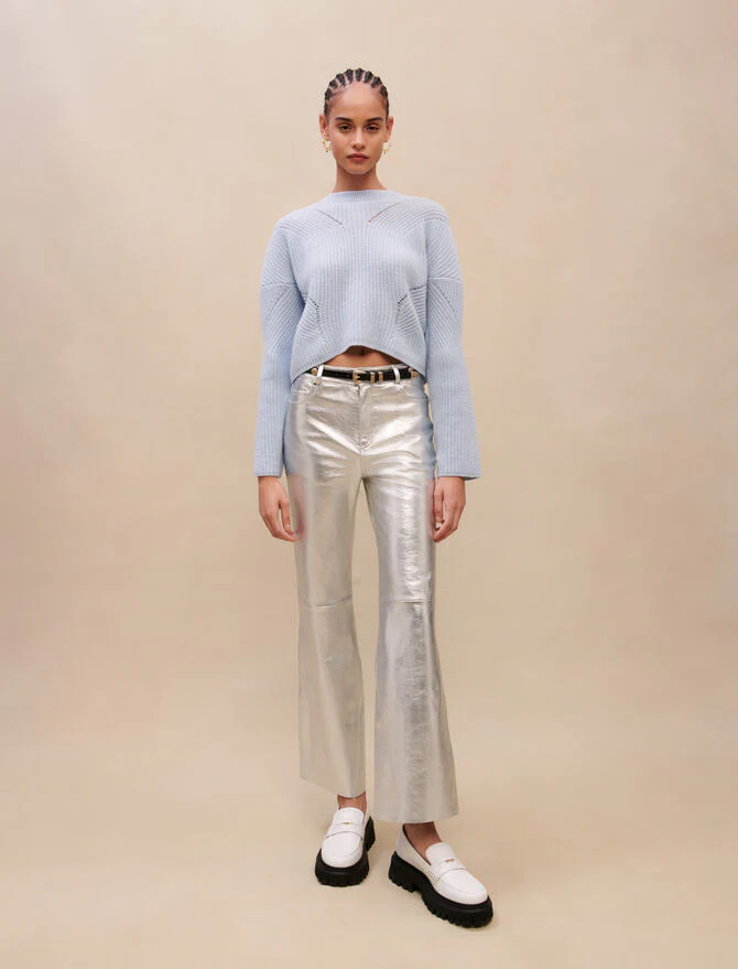 Pantalones de piel plateados