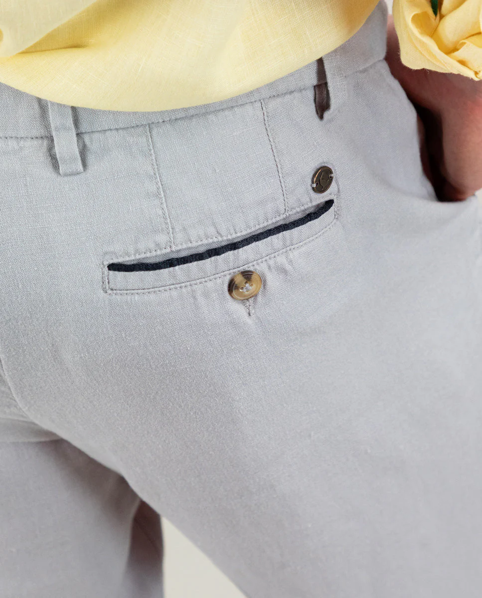 Pantalón Elástico Lino Garment Dyed Gris