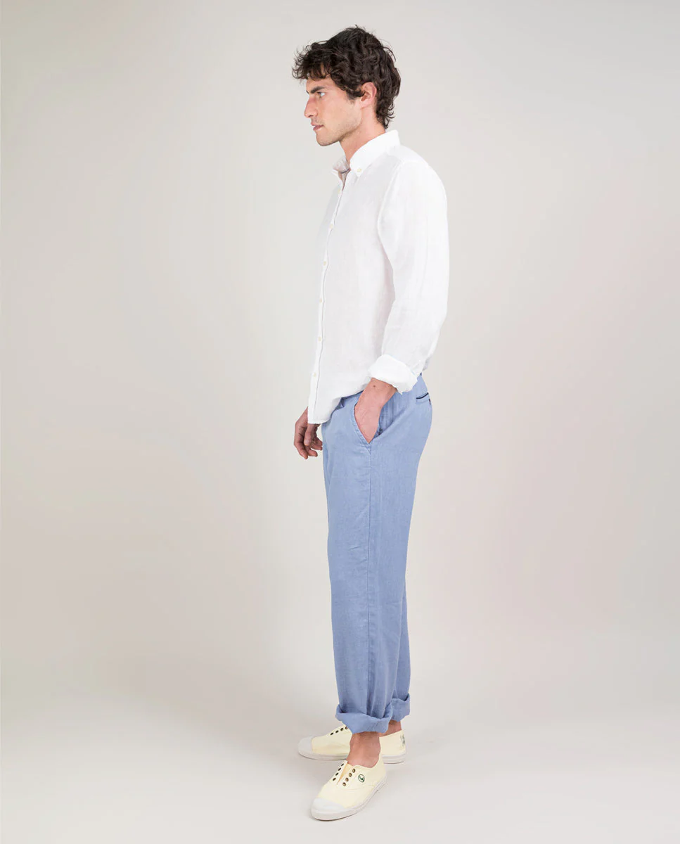 Pantalón Elástico Lino Garment Dyed Azul