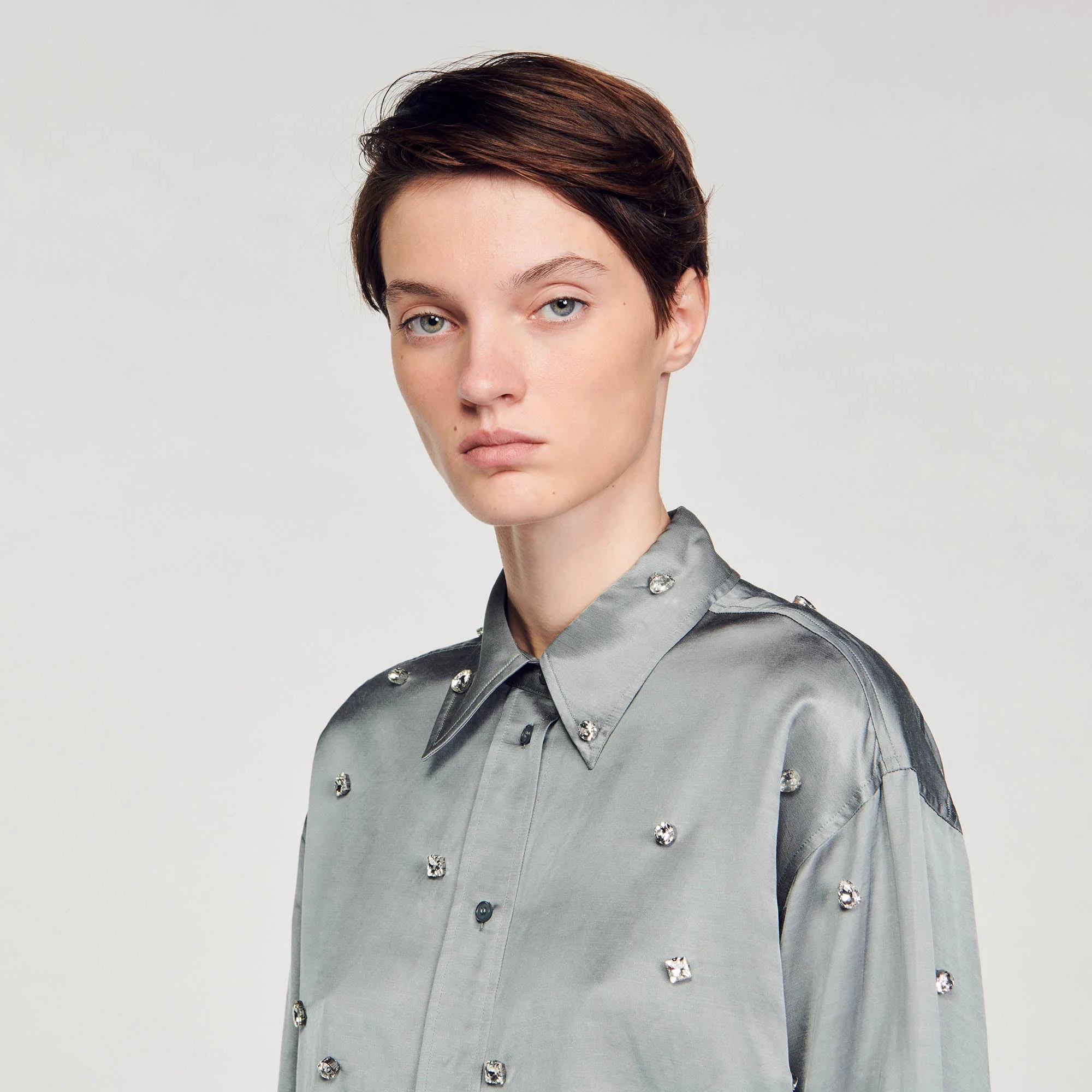 Camisa satinada decorada con strass