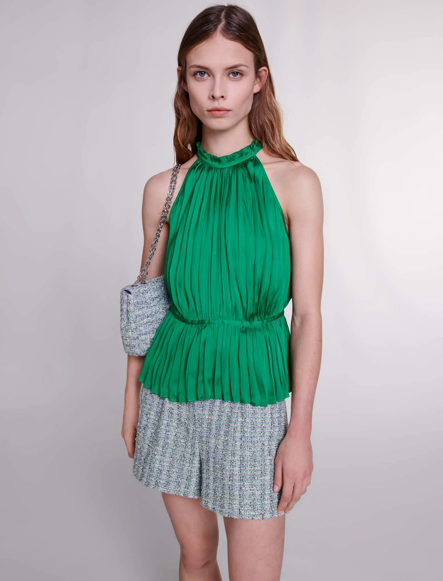 Top satinado y plisado