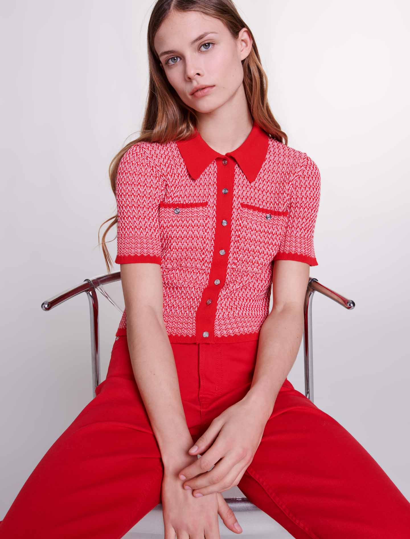 Polo corto con motivos de espiga