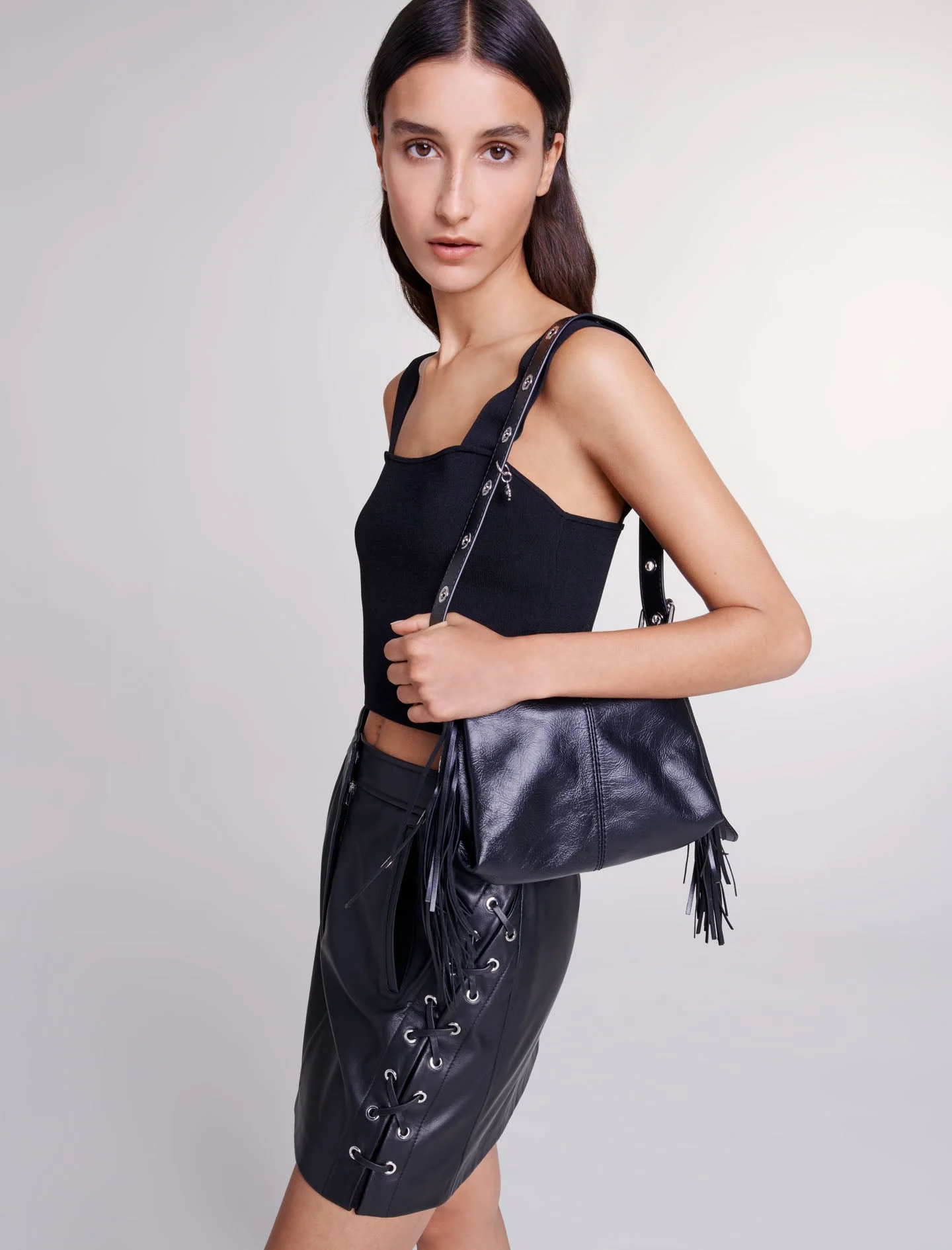 Falda corta de cuero