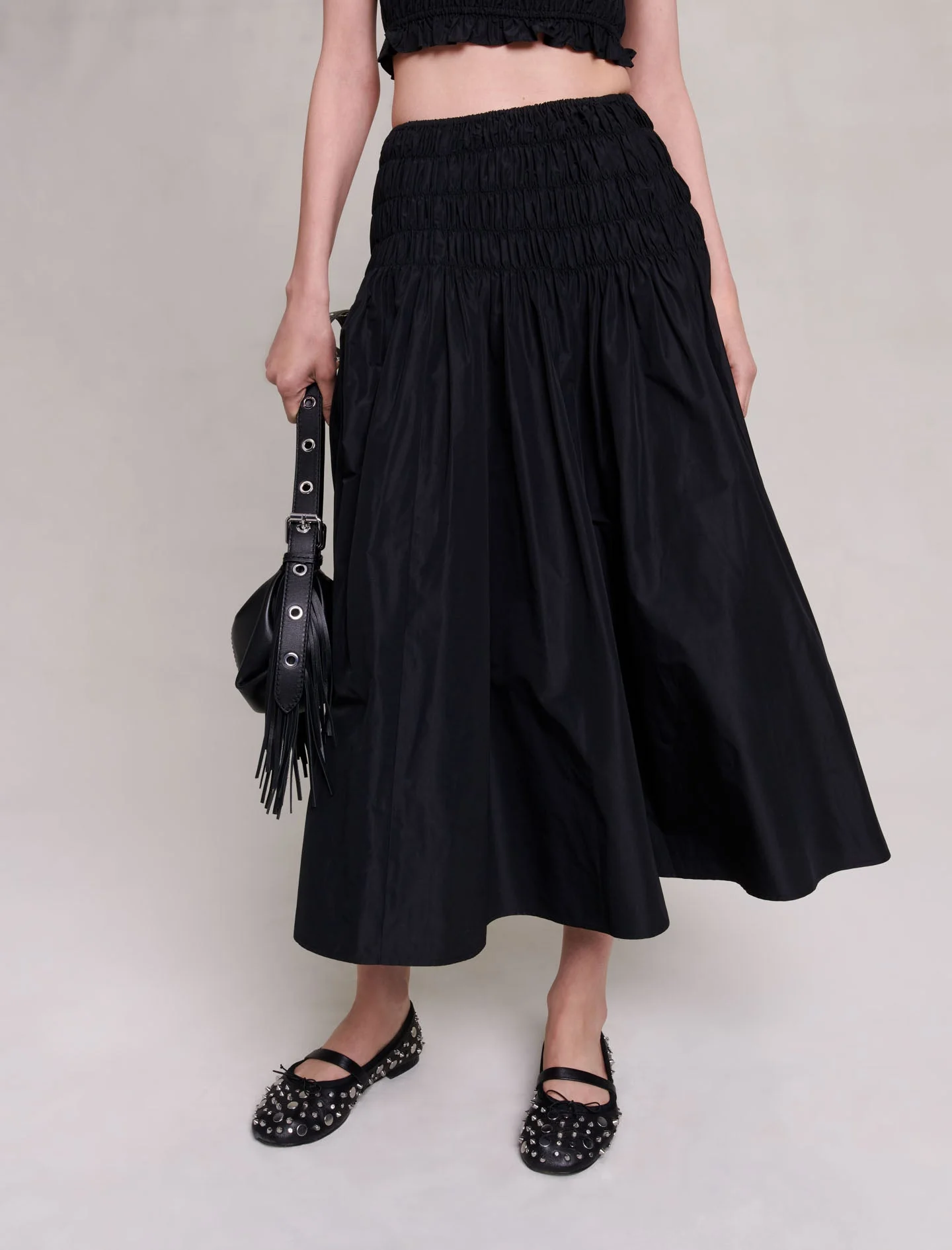 Falda larga plisada con tachuelas