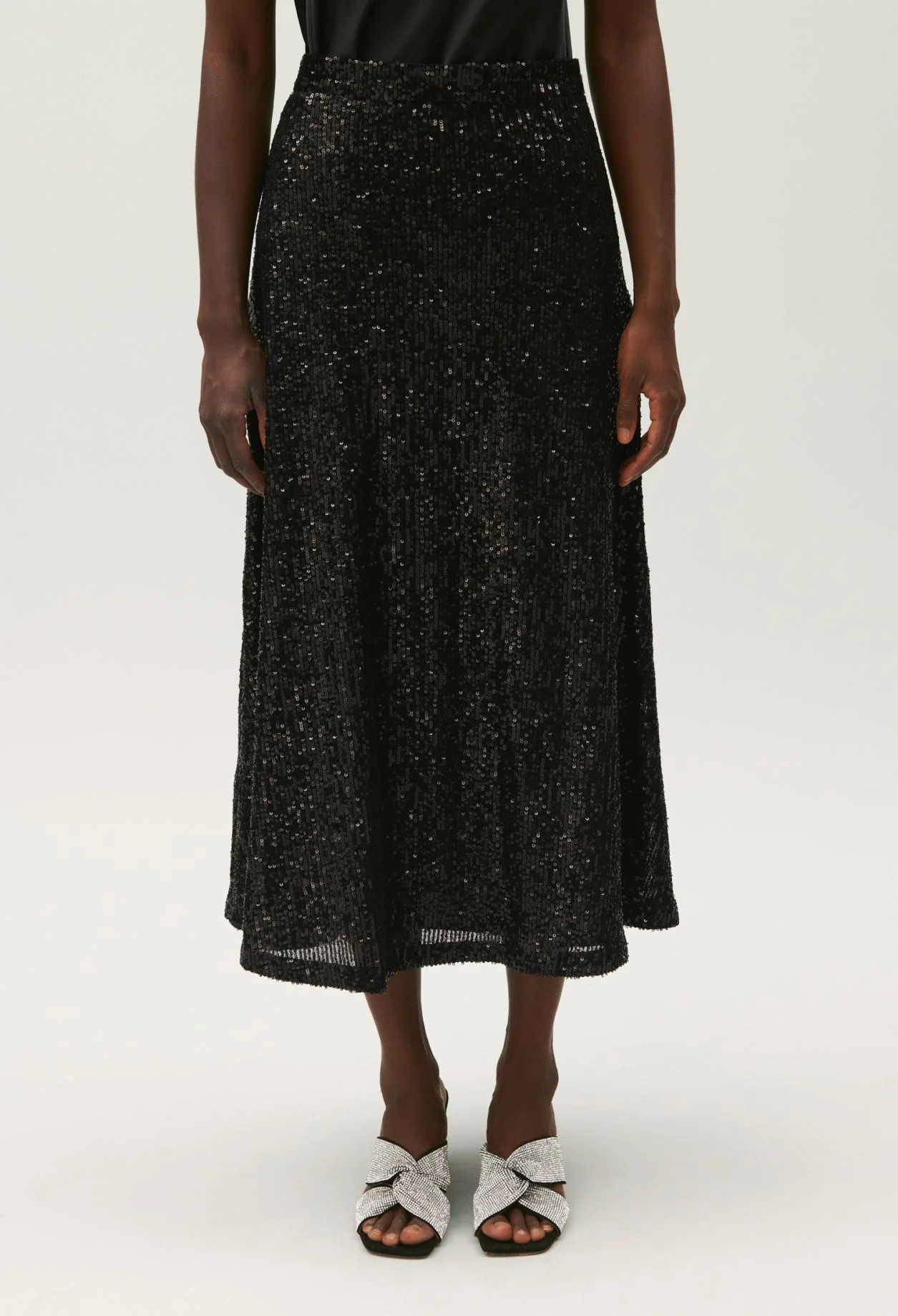 Falda midi de lentejuelas negra