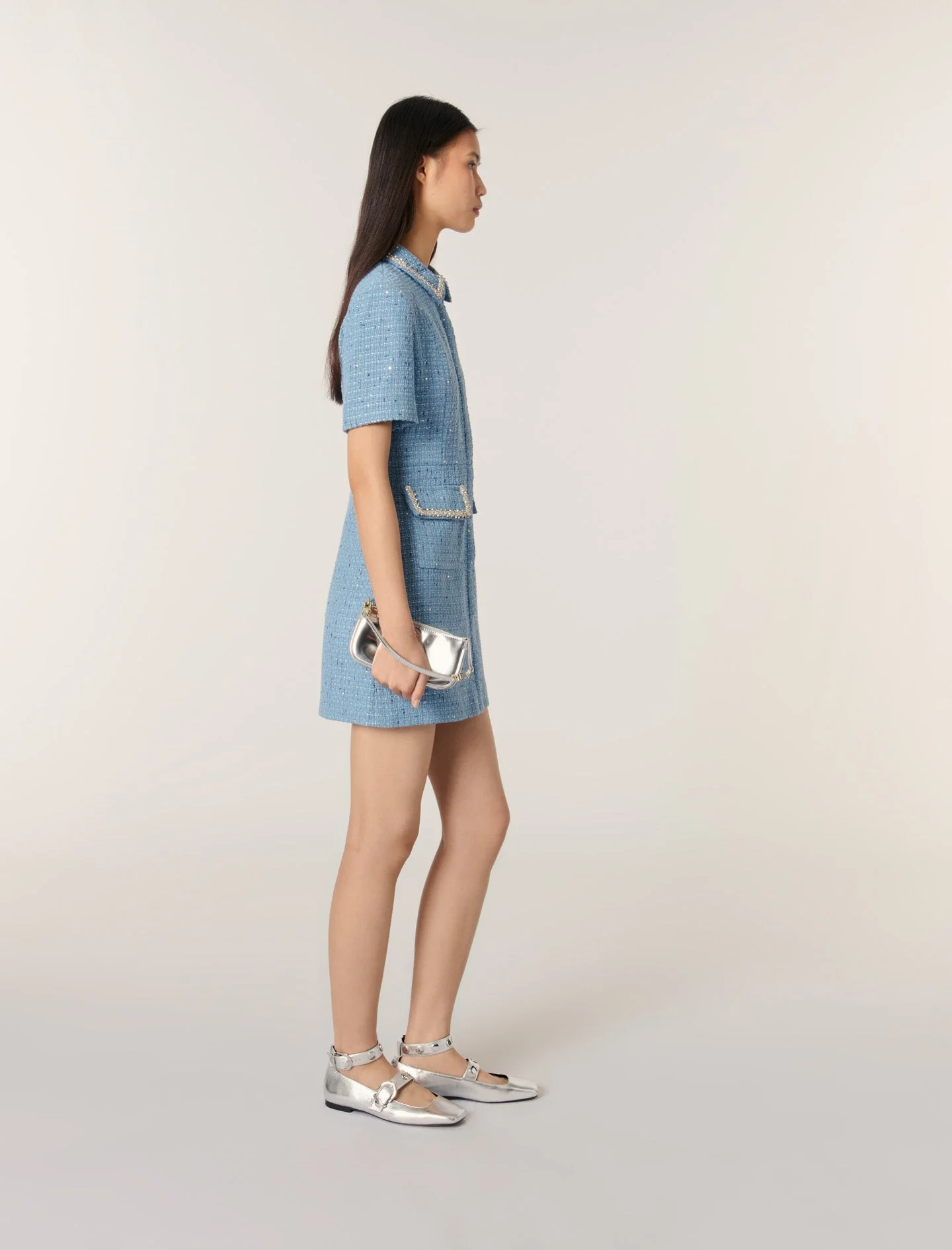 Vestido corto de tweed con lentejuelas