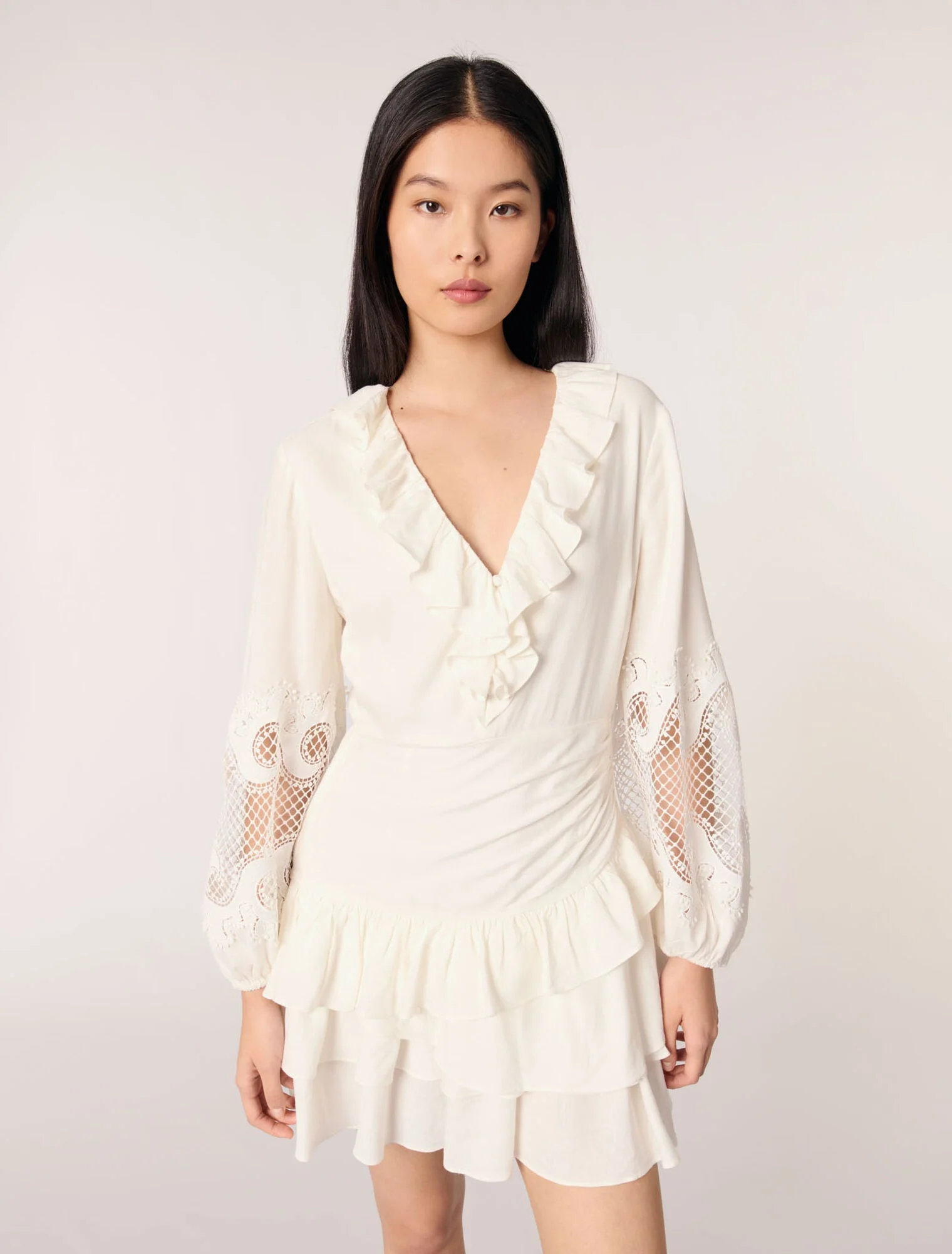 Vestido con volantes y mangas bordadas