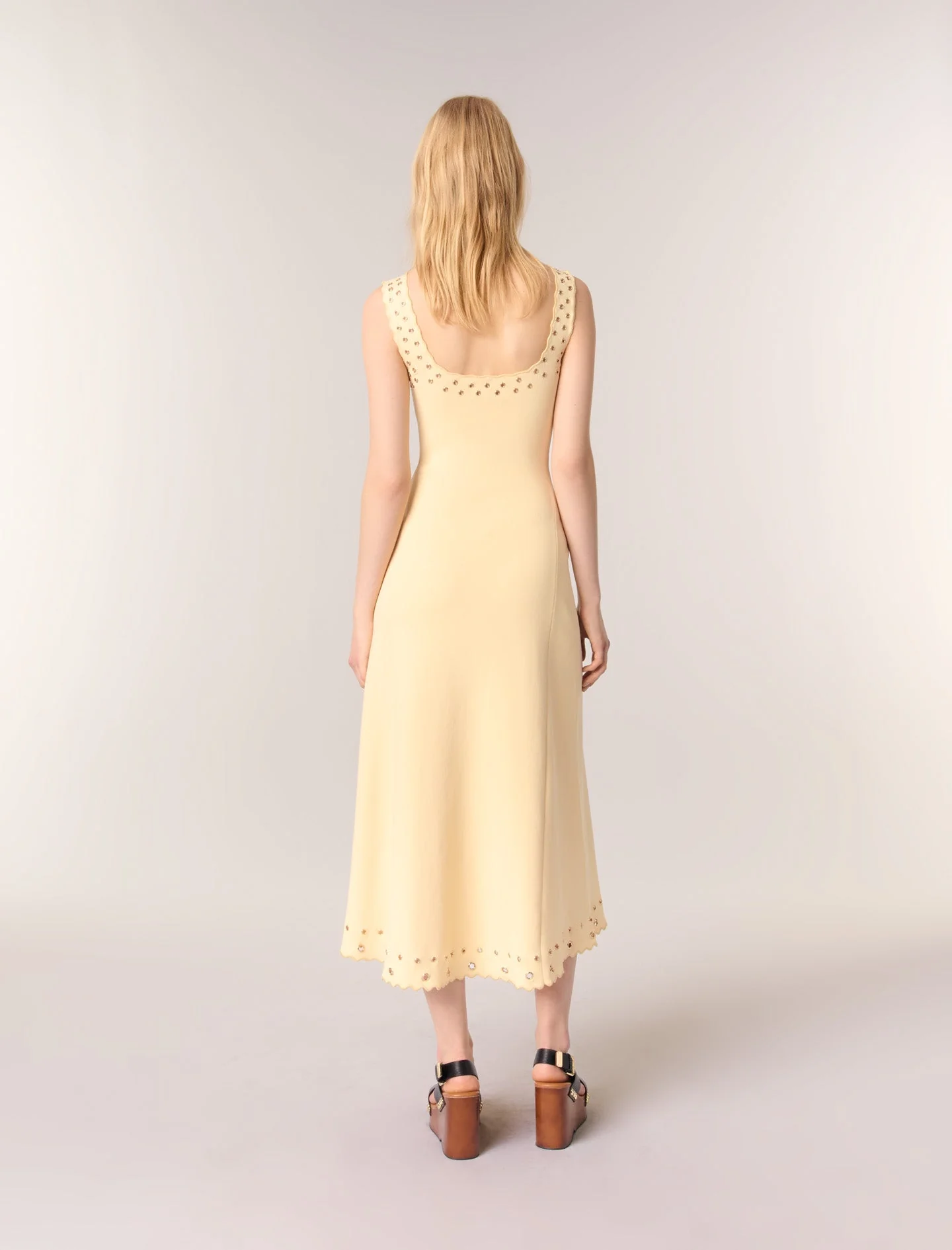 Vestido largo de punto con ojales