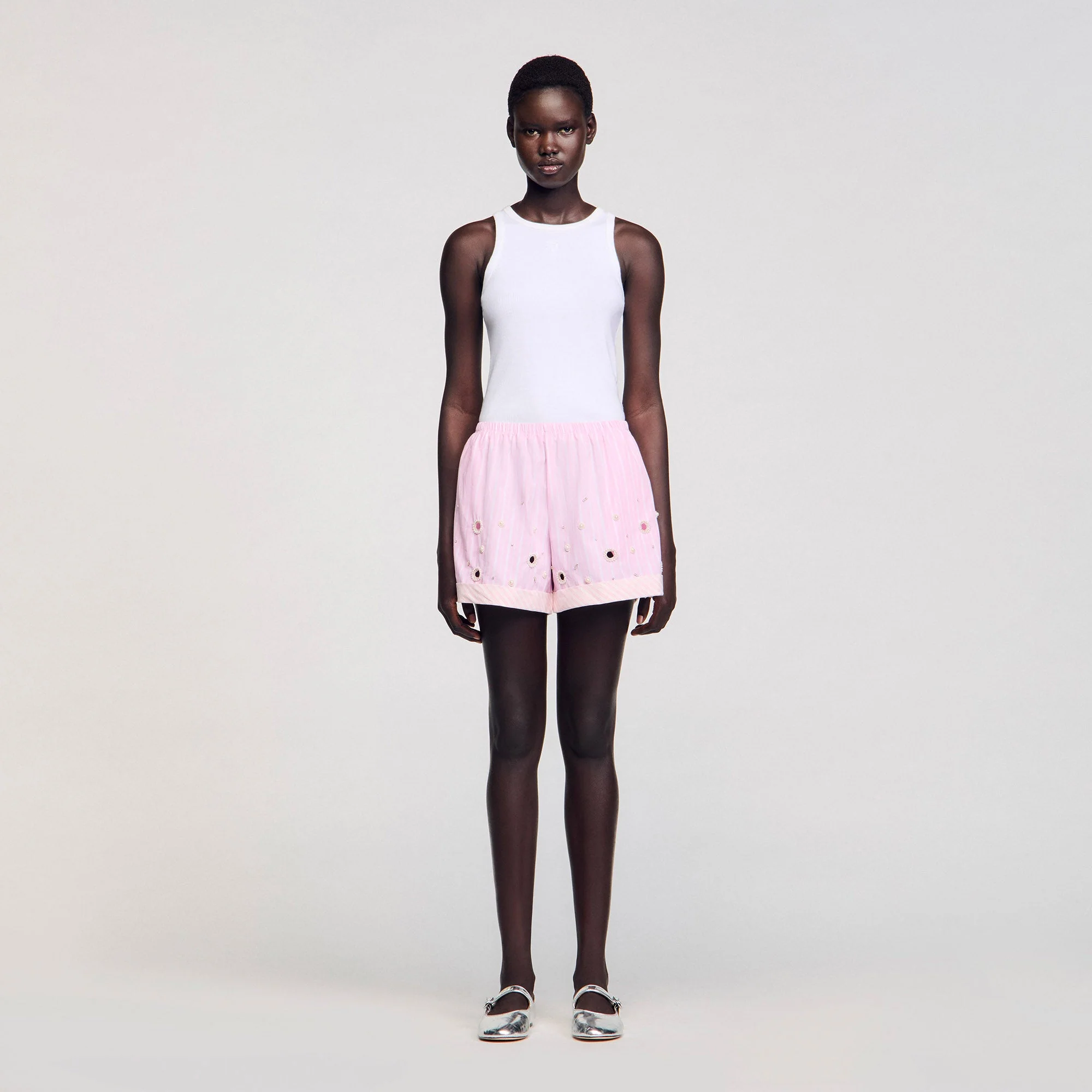 Pantalón corto con strass y rayas