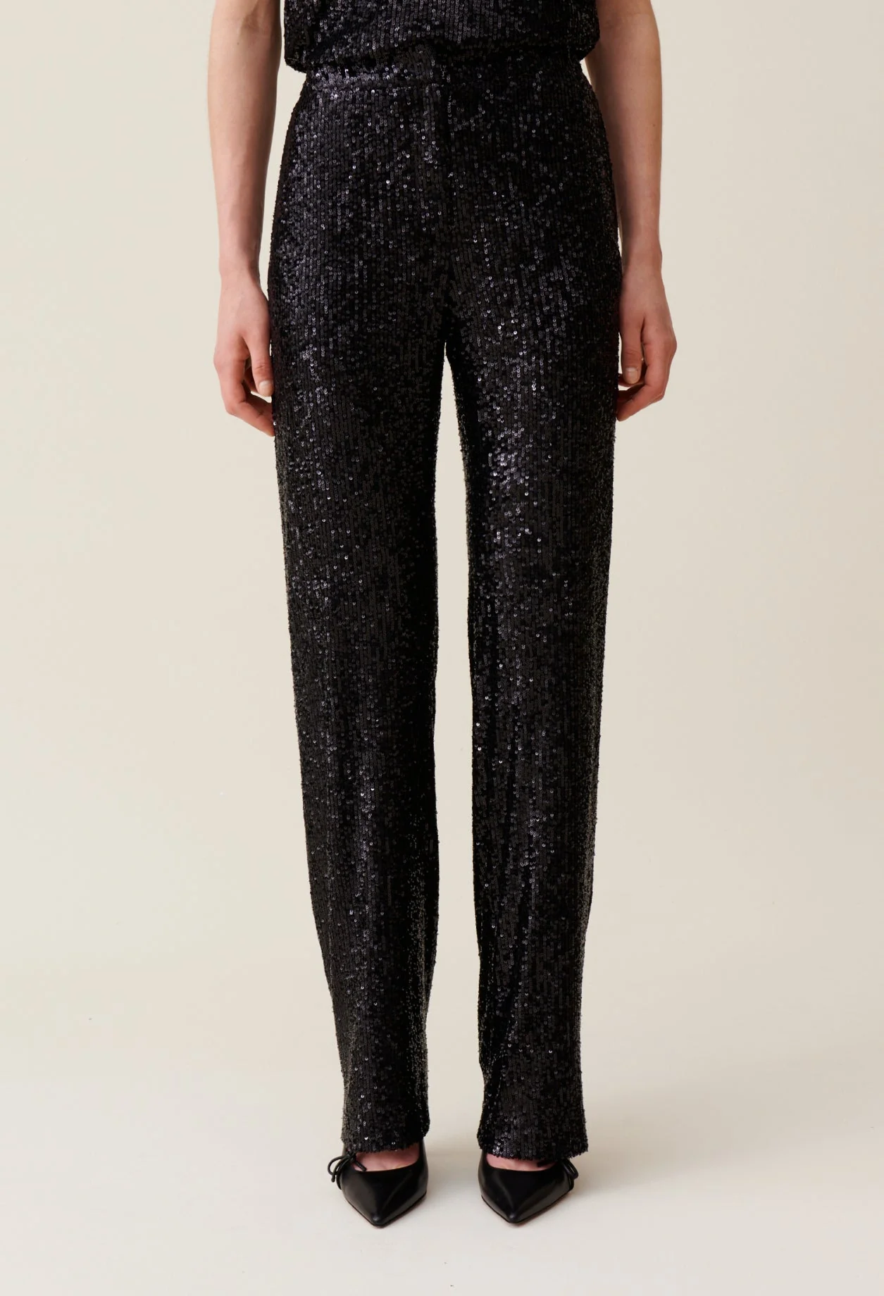 Pantalón recto de lentejuelas negras