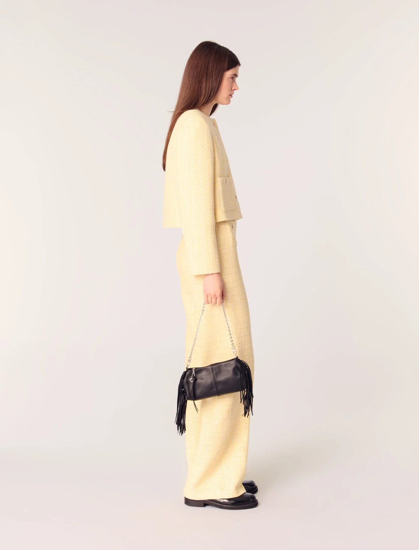 Pantalón recto de tweed y lúrex