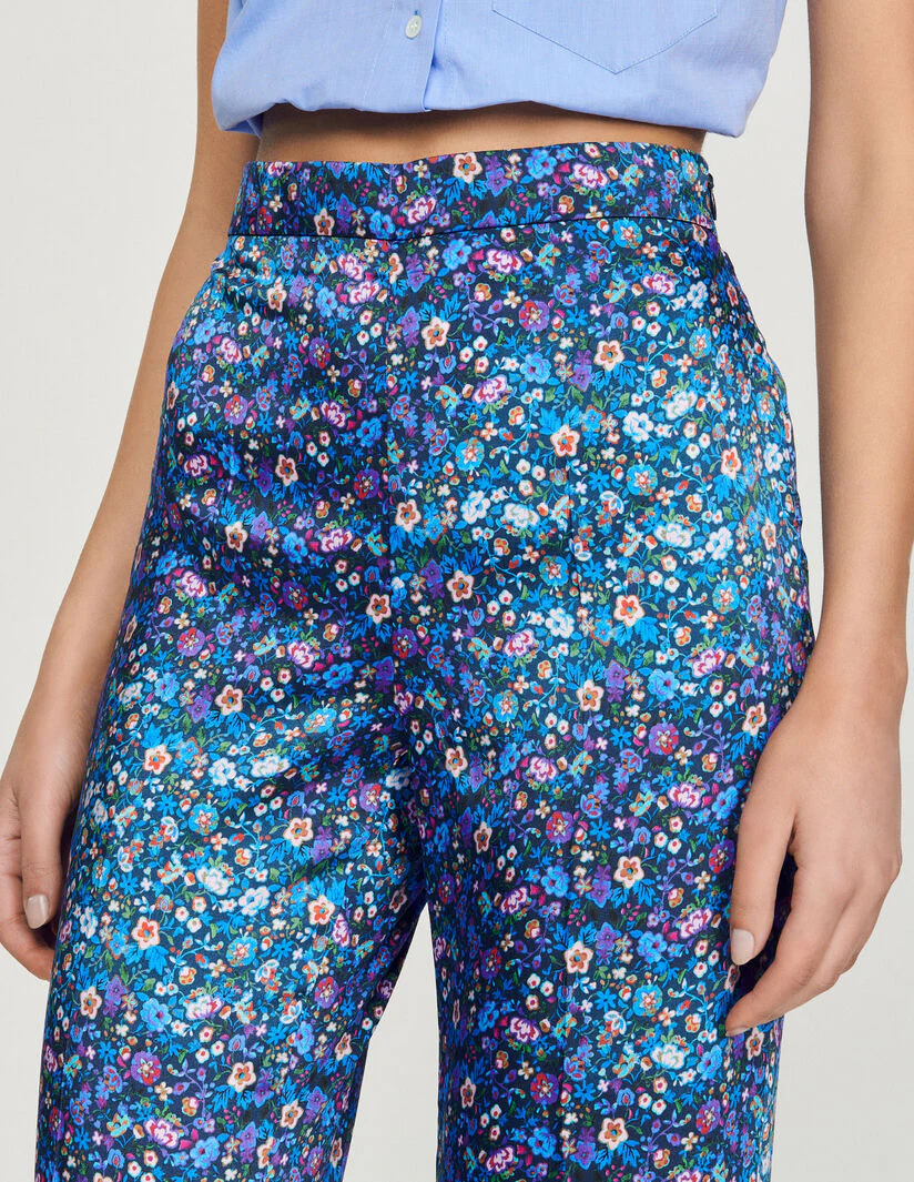 Pantalón satinado con estampado floral