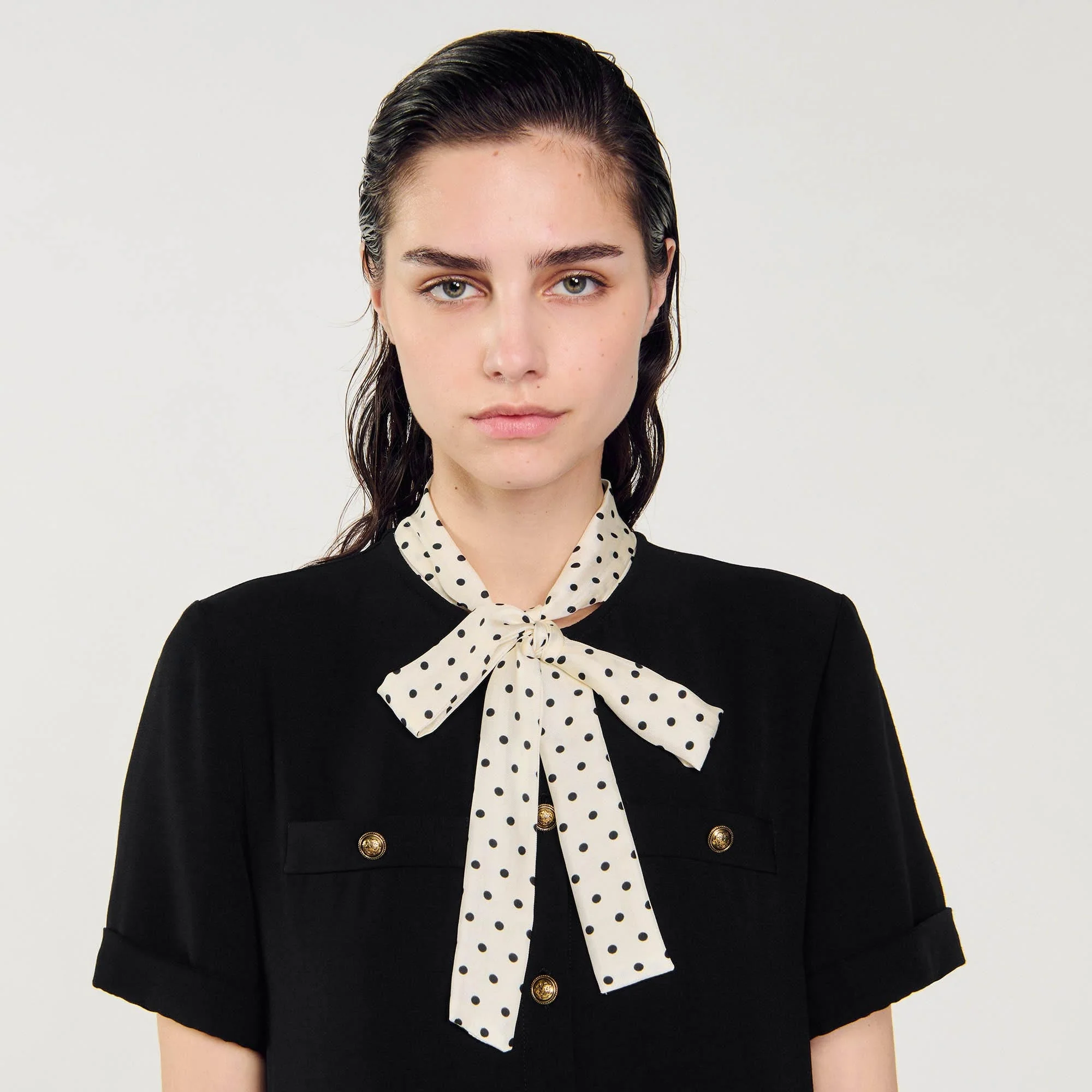 Vestido corto con corbata de lunares