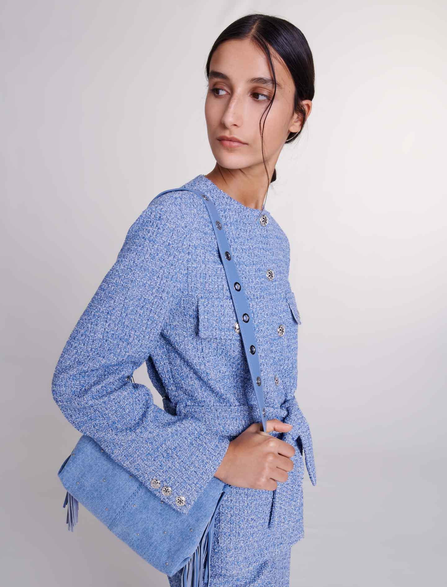Chaqueta de tweed con cinturón