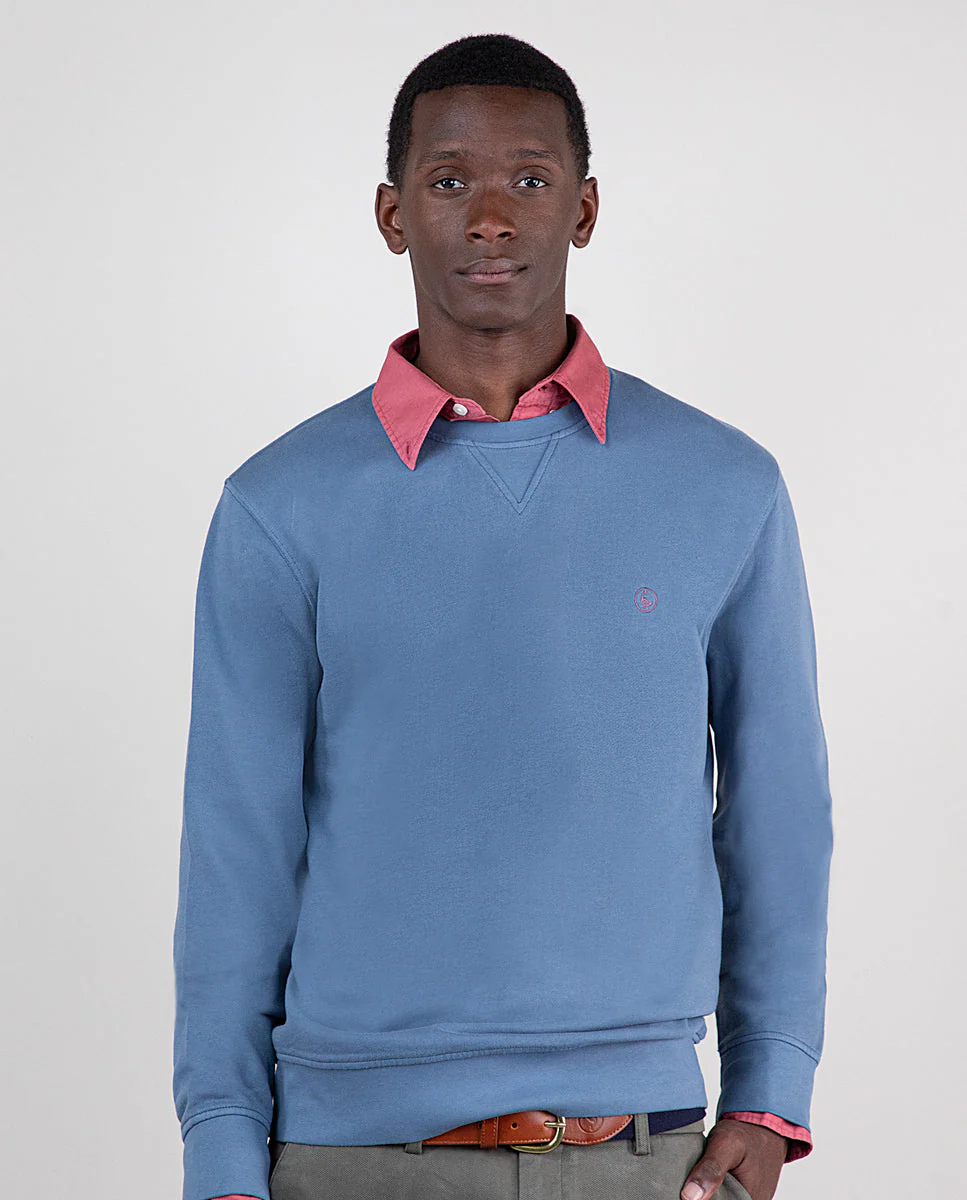 Sudadera Cuello Caja Garment Dyed Azul